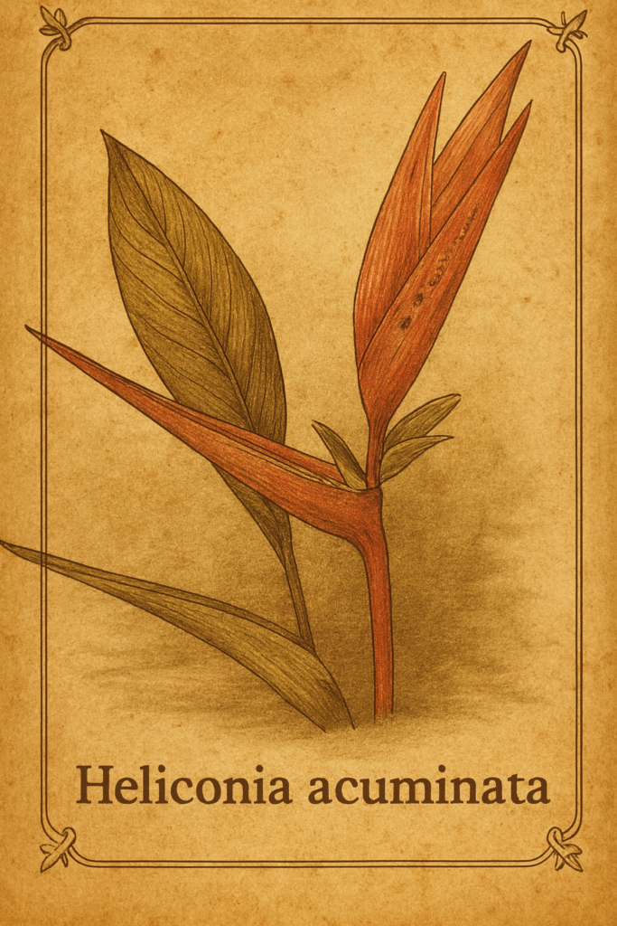 La Heliconia acuminata, conocida comúnmente en diversas regiones como platanillo o falsa ave del paraíso, es una especie herbácea perenne perteneciente a la familia Heliconiaceae. Se caracteriza por su porte elegante y su follaje verde intenso, así como por sus llamativas inflorescencias que la convierten en una planta altamente apreciada tanto en jardines tropicales como en estudios botánicos. Es una especie adaptada a climas cálidos y húmedos, donde forma parte importante de la vegetación del sotobosque en selvas y bosques tropicales..