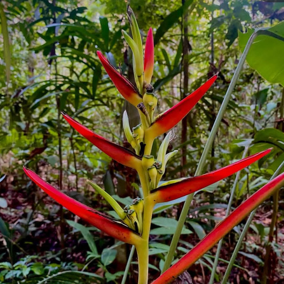 Atractivo Visual y Recompensa: Las brácteas de colores intensos (rojo, naranja, rosa) sirven como “banderas” visuales que destacan en la penumbra del sotobosque. La recompensa es un néctar abundante y de alta energía que se produce en la base de la flor tubular.