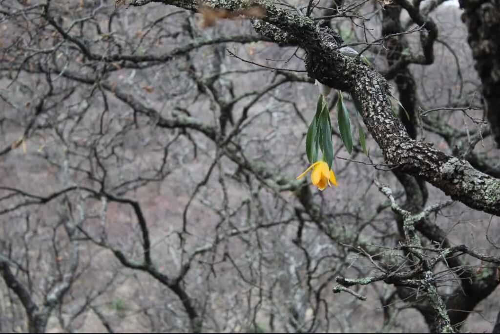 Reposo Invernal e Inducción Floral: A diferencia de la Vanilla que mantiene cierto follaje activo, la Prosthechea citrina entra en un estado de semiletargo o reposo profundo durante el invierno. La inducción floral depende estrictamente de este periodo de estrés ambiental: requiere una disminución drástica del riego (simulando la sequía estacional), una mayor exposición a la luz solar debido a la caída de hojas de los árboles hospederos caducifolios, y un descenso marcado en las temperaturas nocturnas. Durante estos meses fríos, la planta detiene su crecimiento vegetativo para concentrar su energía en la diferenciación de las yemas florales en el ápice de los pseudobulbos maduros.