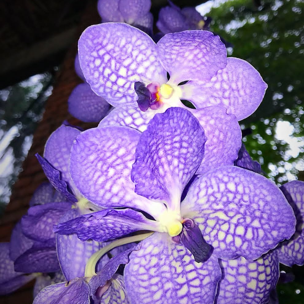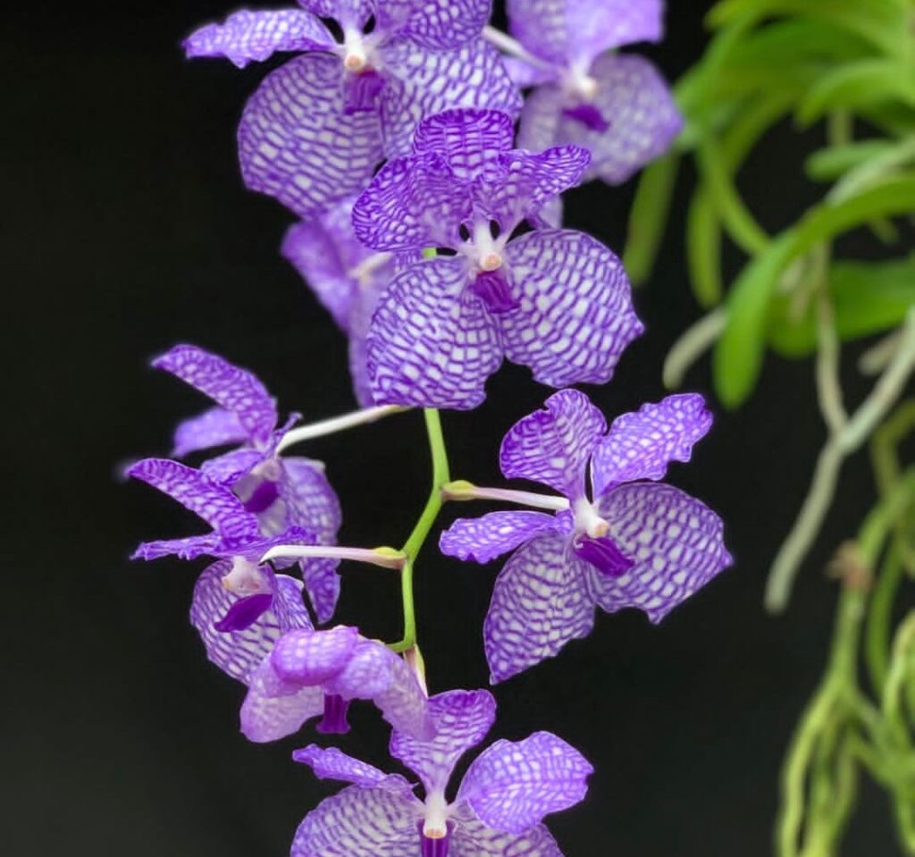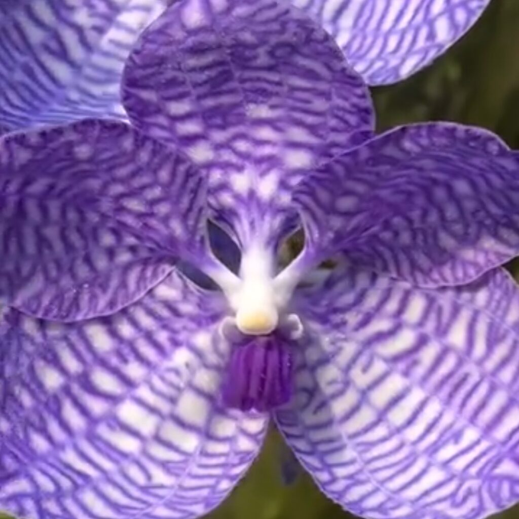 Vanda coerulea var. delicata: Una variante que habita en zonas de menor insolación. Presenta flores de un blanco puro o con un tinte lavanda apenas perceptible, manteniendo el labelo de un azul profundo que contrasta con el resto de la flor.