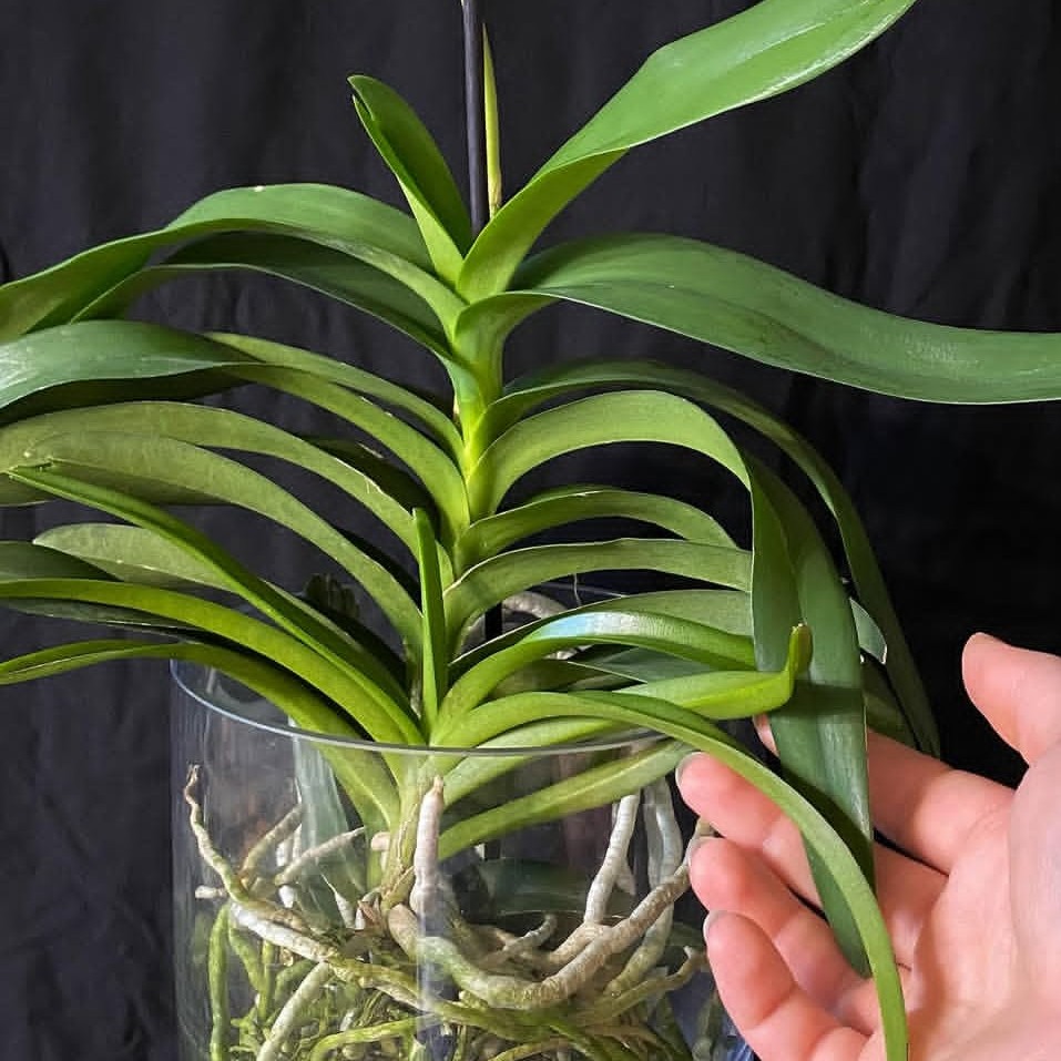 Fase de Crecimiento Vegetativo y Expansión Radicular: Coincidiendo con la llegada de las lluvias monzónicas y el aumento de la temperatura, la planta inicia su fase de mayor actividad vegetativa. Es el momento de la “captura de recursos”: el tallo central produce de dos a tres pares de hojas nuevas dispuestas en abanico, mientras el sistema radicular se expande agresivamente. Las raíces no buscan suelo, sino que se ramifican en el aire o se anclan con fuerza a la corteza rugosa de los árboles, absorbiendo los lixiviados de nitrógeno que bajan con la lluvia. Esta etapa de expansión es crítica para acumular la biomasa necesaria que permitirá a la planta resistir el rigor del próximo invierno y volver a florecer.
